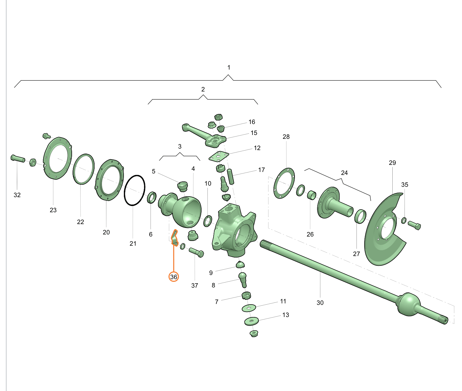 Τοποθεσία: Περιοχή στοπ άξονα εμπρός/κόμβου διεύθυνσης (όπως φαίνεται από τη θέση του οδηγού)